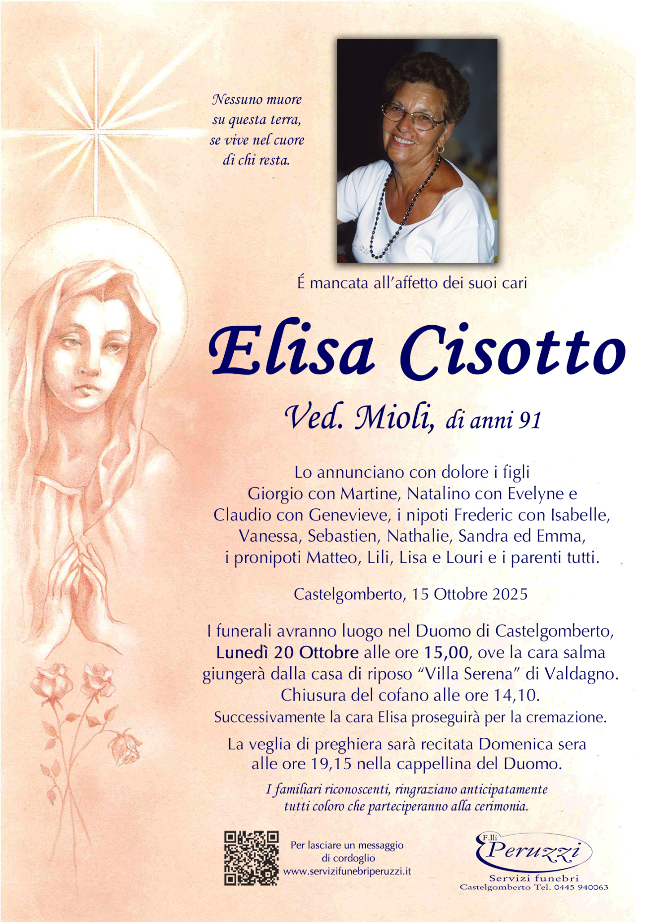 Funerale: Martedì 17 Settembre ore 15,30 Duomo Castelgomberto