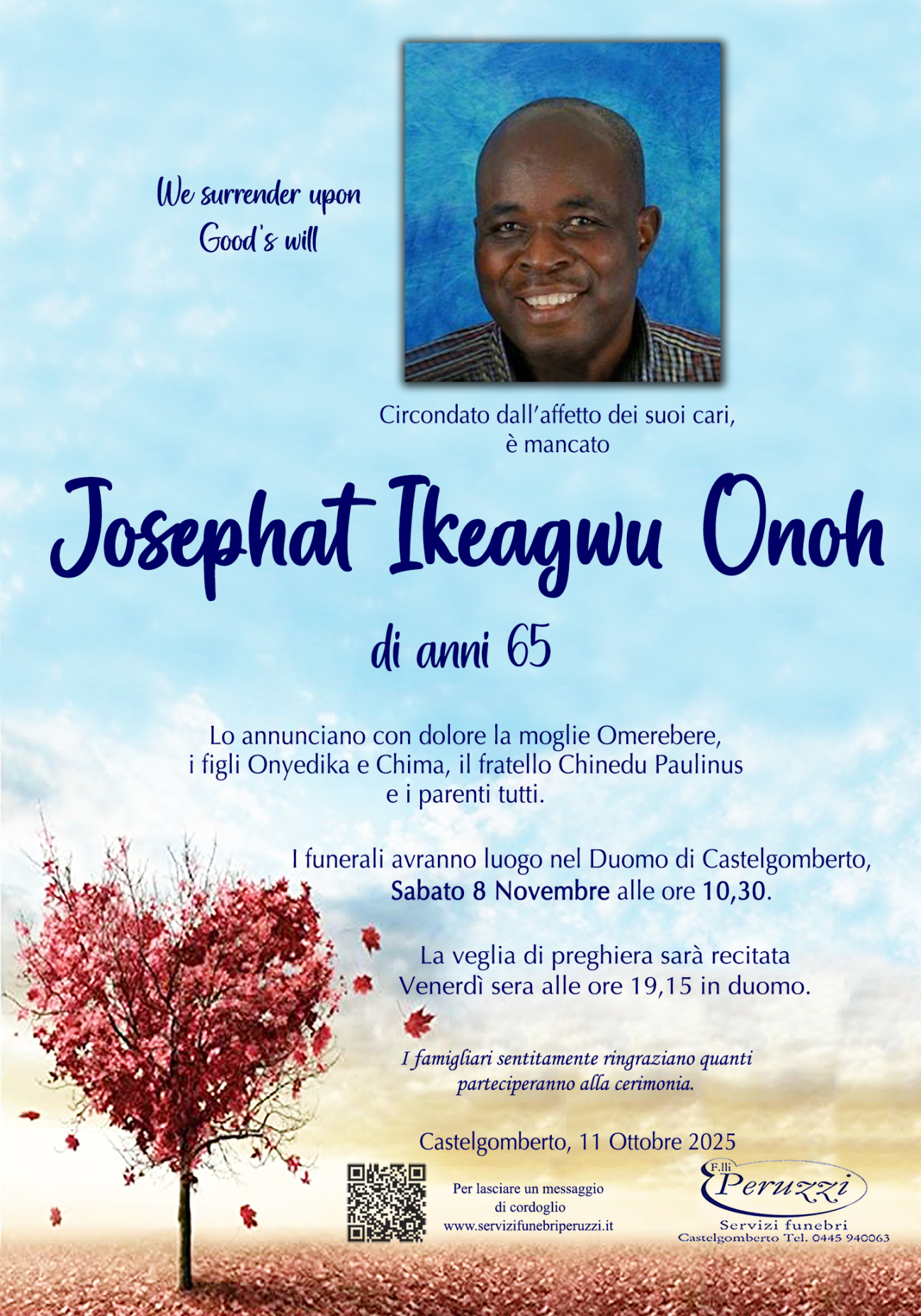 Funerale: Venerdì 25 Ottobre ore 15,00 Duomo Castelgomberto