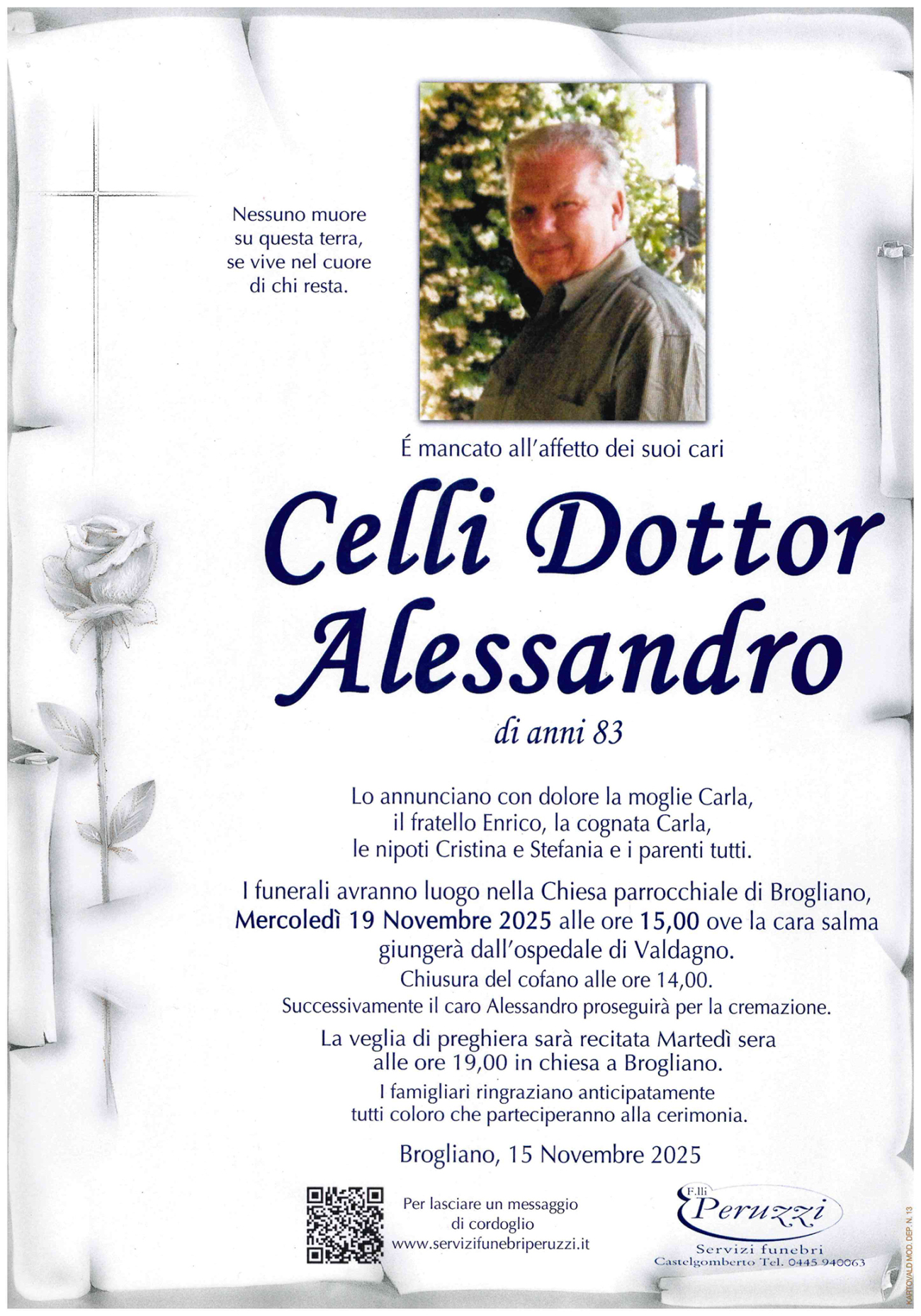 Funerale: Mercoledì 6 Novembre ore 15:00 chiesa Valle di Castelgomberto